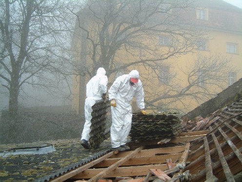 Asbesthaltige Platten werden vorschriftsmäßig entsorgt.